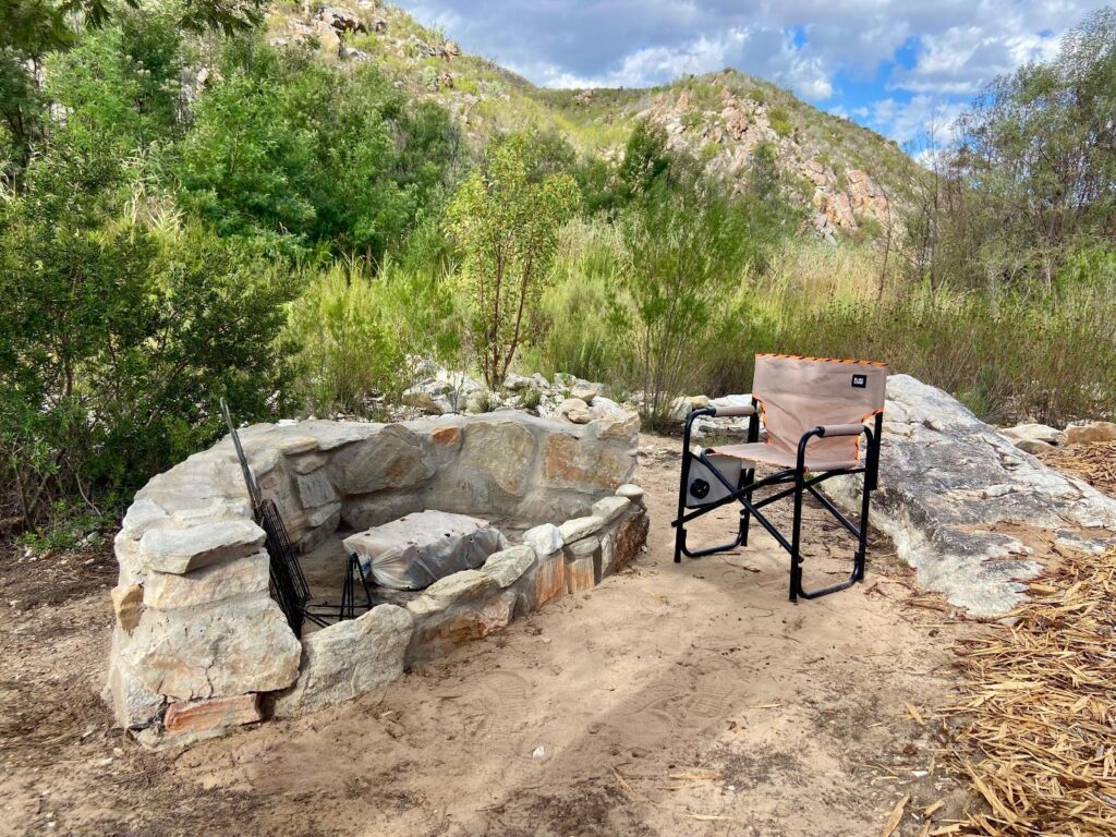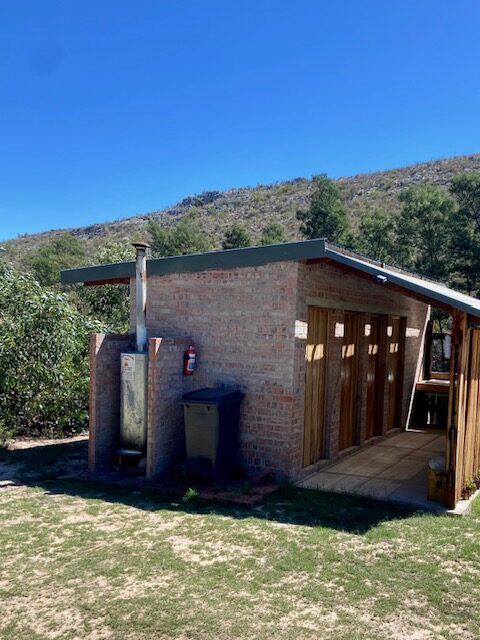 The STONE COTTAGE sleeps 6 and has 3 bedrooms featuring 2 bedrooms with double beds and 1 bedrooms with 2 single beds. It’s rustic with an outdoor shower and Karoo loo ( longdrop ) inside shower and toilet. Kitchen features a gas stove and oven, gas fridge/freezer. Wood fired hot tub and braai/barbecue.