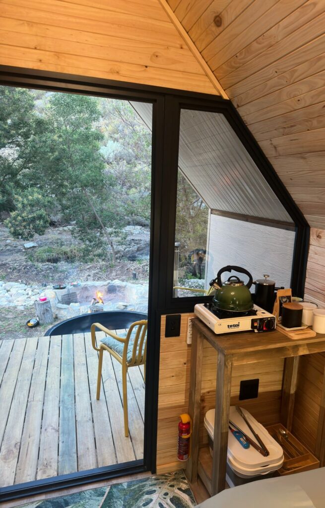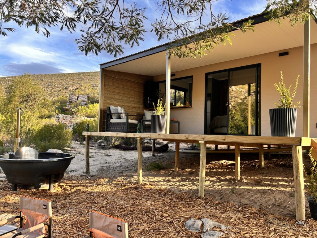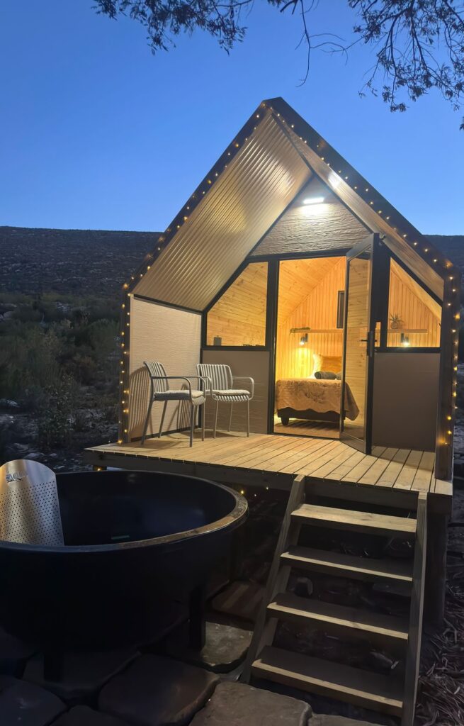 HIDEAWAY is our most private cottage that sleeps 6 people. Has 3 bedrooms ( one is a loft room with outside stairs and bathroom access from the door downstairs) 2 bathrooms with showers only of which one is an on-suit, huge fireplace and comfortable living room, dining room area with a fully fitted kitchen. Wood fired hot tub and beautiful “stoep” with barbecue facility and outdoor table with chairs