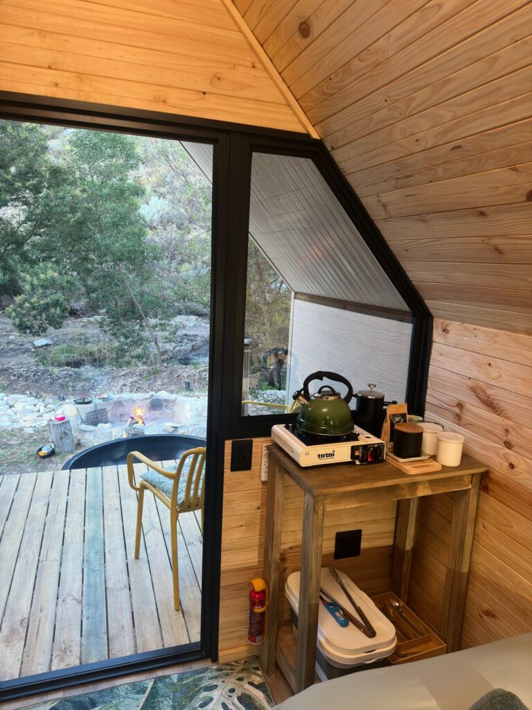 Experience the perfect blend of rustic charm and modern comfort in our two signature A-Frame units. Each retreat features a private hot tub for starlit soaking and a thoughtfully curated coffee station equipped with all the essential cutlery and crockery for your morning brew. While these units are designed as peaceful sleep-and-soak sanctuaries without indoor cooking, they offer convenient access to the well-maintained communal campsite facilities just a short stroll away.